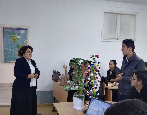 Kafedra dotsenti J.Umarovaning “Genetika va seleksiya asoslari”fanidan“O’zgaruvchanlik va uning xillari. Genotipik o`zgaruvchanlik” mavzusida ochiq dars o‘tkazdilar.